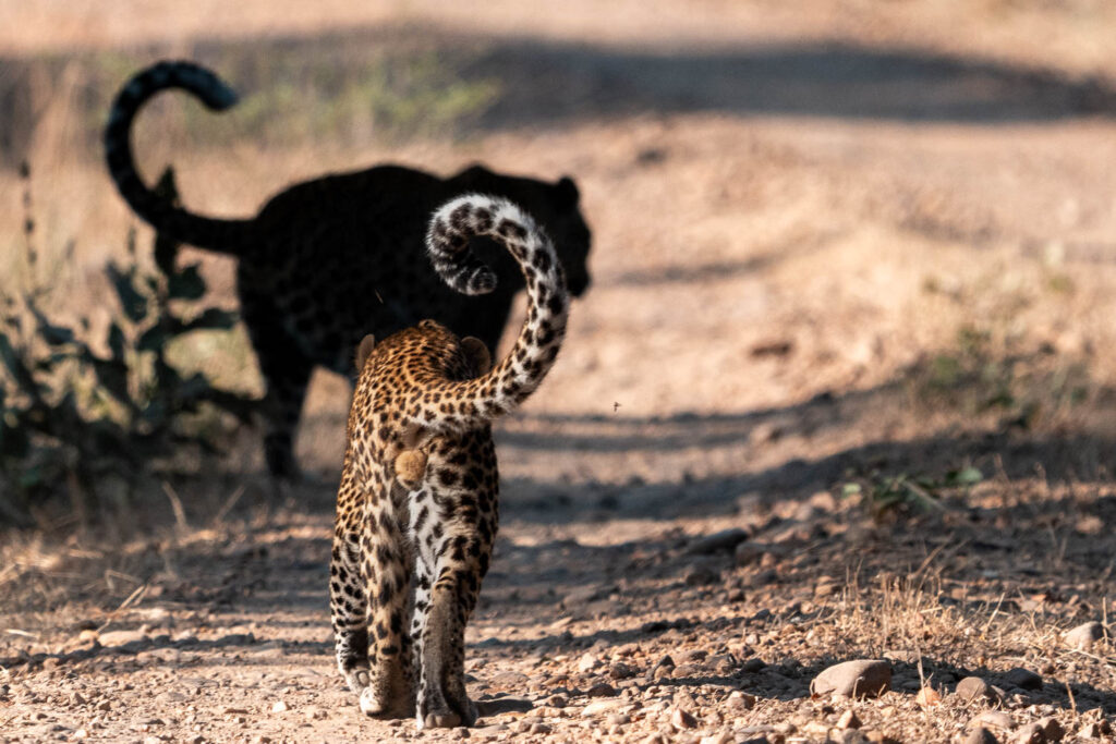 Drei Leoparden am ersten Vormittag. Drei Seelen, die uns in ihren Kreis ließen, wenn auch nur für einen flüchtigen Moment. Doch was ist Zeit in der Wildnis? Ein Atemzug. Ein Blick. Eine Erinnerung, die bleibt.