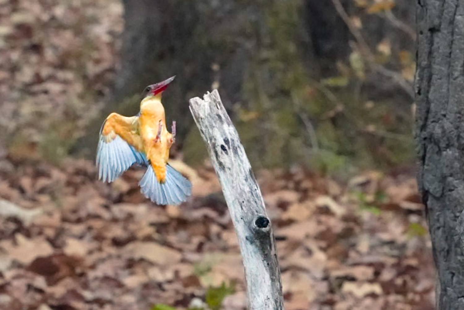 In den schattigen Wassergärten des Bandhavgarh-Nationalparks, dort, wo das Sonnenlicht in goldenen Splittern auf das smaragdgrüne Wasser tanzt, lebt ein Wesen, das aus Farbe und Geschwindigkeit gemacht zu sein scheint. Ein Vogel, klein an Gestalt, doch groß an Schönheit – der Eisvogel.