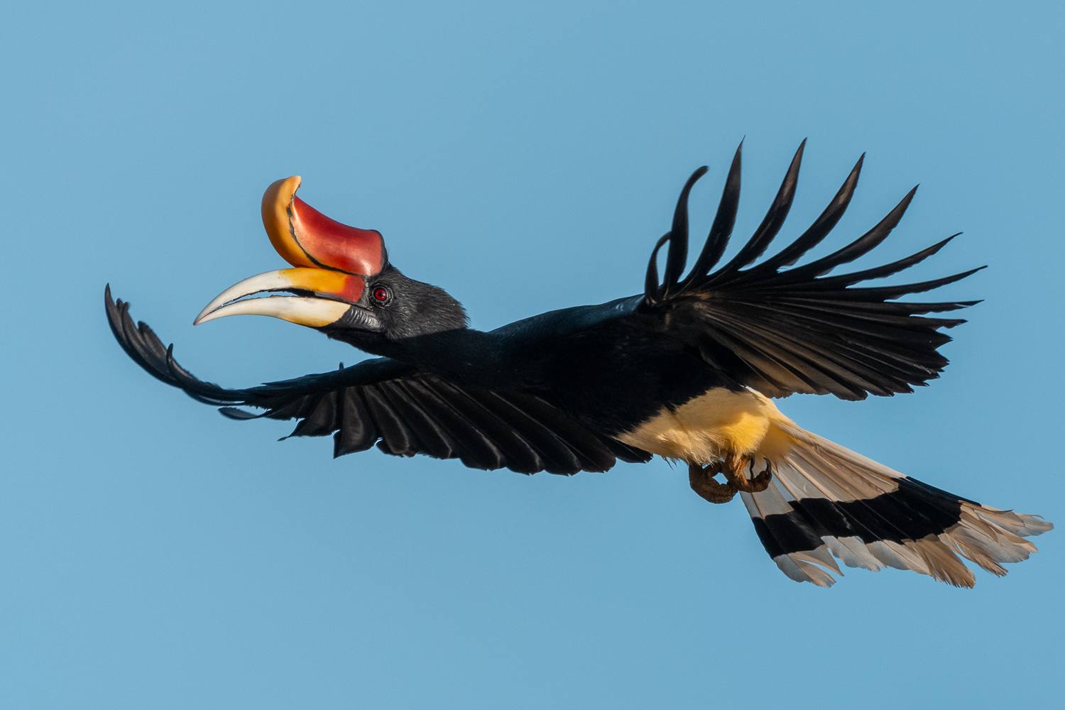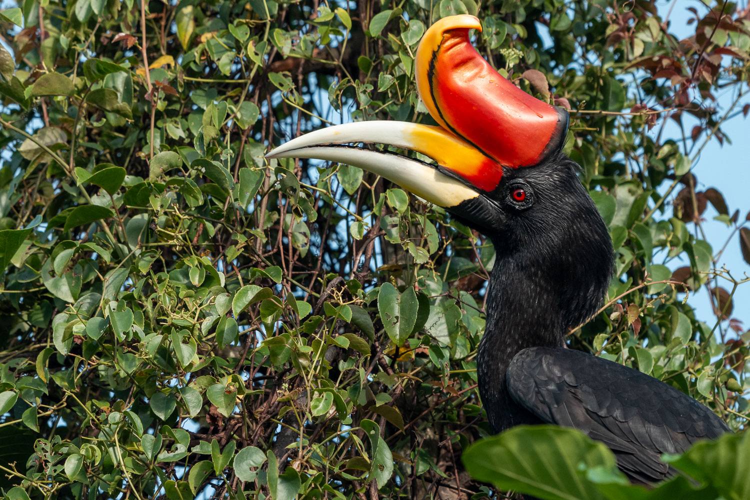 Im ersten Licht des Tages, als Nebelschwaden noch zärtlich über den Kinabatangan-Fluss gleiten, begegneten wir einem Wesen, das wie ein Traum aus einer anderen Welt wirkt: dem Nashornvogel. Hoch oben, auf einem uralten Baum thronend, saß er – majestätisch, unbewegt, als wüsste er um seine königliche Erscheinung. Sein prächtiges Horn, das wie eine lebendige Krone auf seinem Haupt ruht, scheint nicht von dieser Welt. Es erzählt von alten Mythen, in denen Vögel Boten der Götter waren.