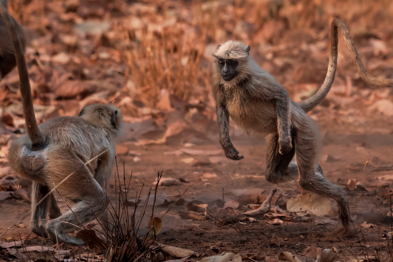 Heute hatte ich das unvergleichliche Glück, die Hanuman Languren im Tadoba Nationalpark zu beobachten – eine Begegnung, die sich wie ein zarter Traum in mein Gedächtnis eingeprägt hat. Diese faszinierenden Geschöpfe, mit ihrem grazilen Körperbau und den großen, ausdrucksvollen Augen, scheinen die Seele der indischen Wildnis zu verkörpern. Ihre Bewegungen sind ein Tanz, der den Rhythmus der Natur widerspiegelt, eine Symphonie aus Lebensfreude und Anmut.