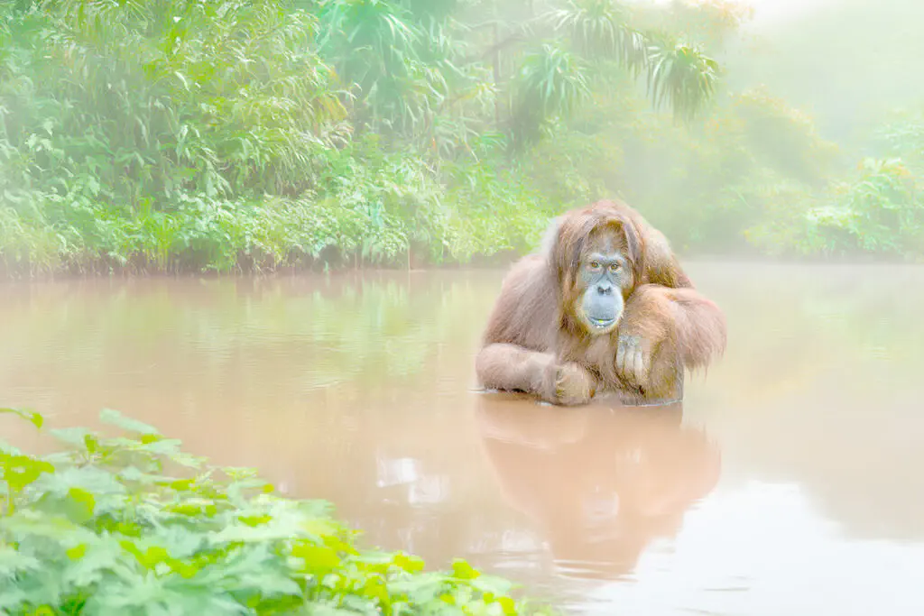 Die Superstars unter den hiesigen Tieren sind die wilden Orang-Utans, die hier regelmäßig gesichtet werden und die Nasenaffen. Es gibt in diesem Gebiet 10 verschiedene Primatenarten wie zum Beispiel Silberlanguren, Rotlanguren oder Gibbons usw. Zu den weiteren Lebewesen, die wir entlang des Flusses fotografieren möchten, gehören Zwergelefanten, Krokodile, Warane, Otter, verschiedene Adler, Eisvögel und die berühmten Nashornvögel, von denen es hier acht unterschiedliche Arten gibt. Insgesamt leben in diesem Gebiet 250 verschiedene Vogelarten, die teilweise äußerst bunt, exotisch und interessant sind.