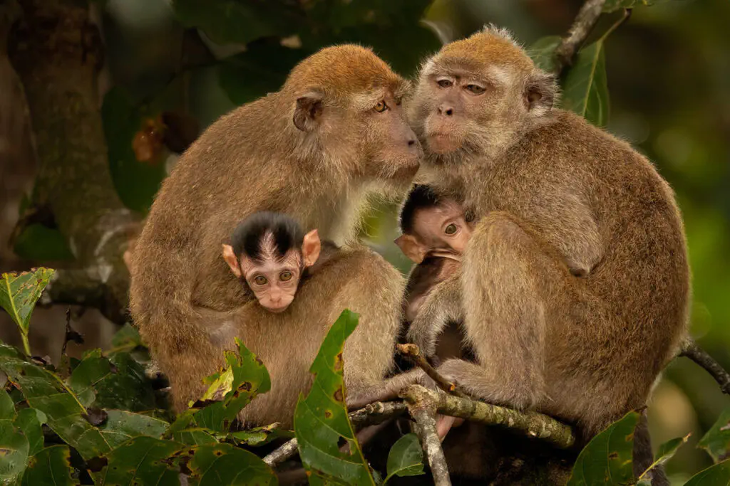 Wo es Futter umsonst gibt, tümmeln sich auch andere Tiere, die gerne etwas davon abbekommen möchten. Somit können wir hier auch andere Affen, Vögel und weitere Tiere auch in Kombination mit den Orang-Utans aufnehmen. Direkt gegenüber dieser Einrichtung und zu Fuss erreichbar ist das Bornean Sun Bear Conservation Centre, wo wir ebenfalls die seltene Möglichkeit bekommen, die Malaienbären zu fotografieren.