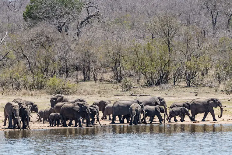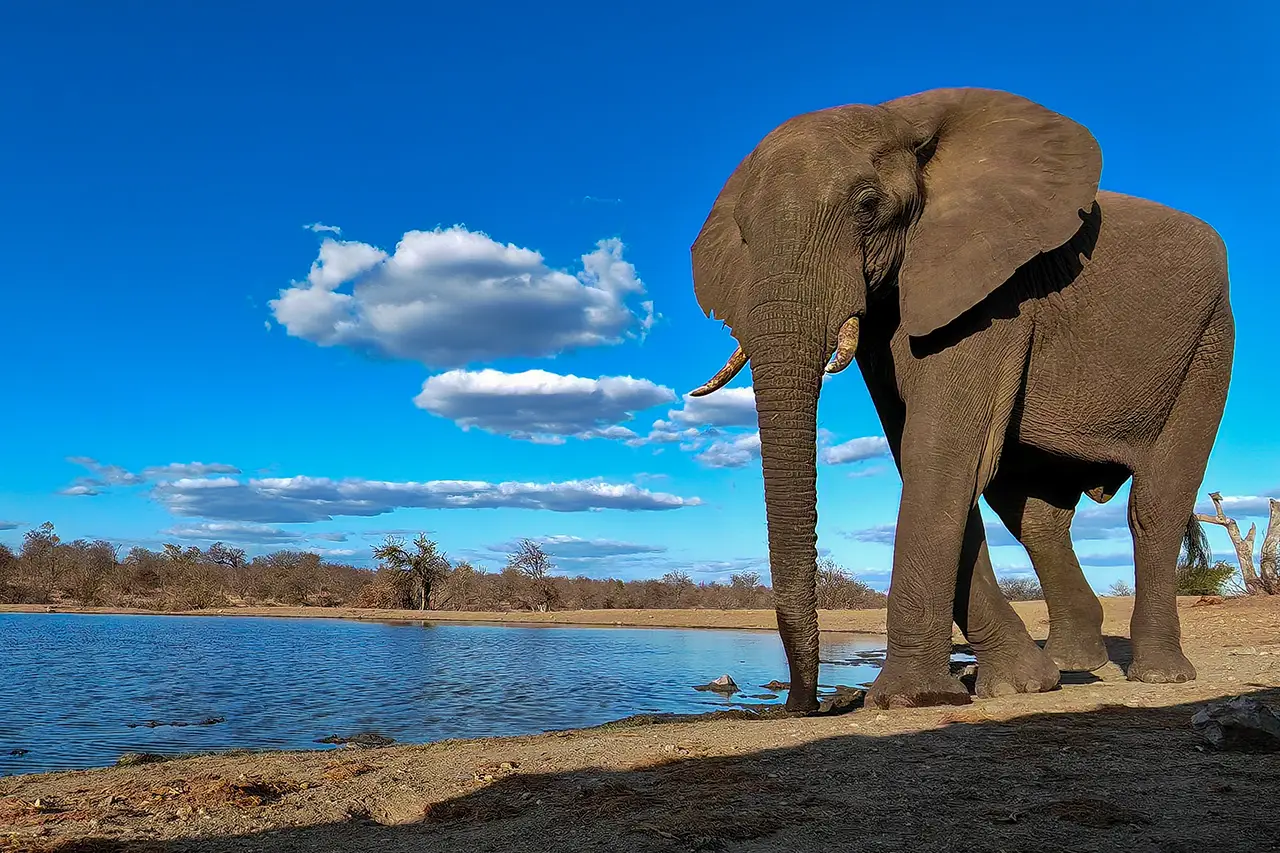 Das Versteck liegt an einer belebten Wasserstelle, die täglich von einer Vielzahl an Wildtieren und Vögeln aufgesucht wird. Doch das wahre Spektakel beginnt, wenn die Elefanten erscheinen – oft in großen Gruppen, majestätisch, neugierig und manchmal nur zwei Meter entfernt von Ihrer Kamera.