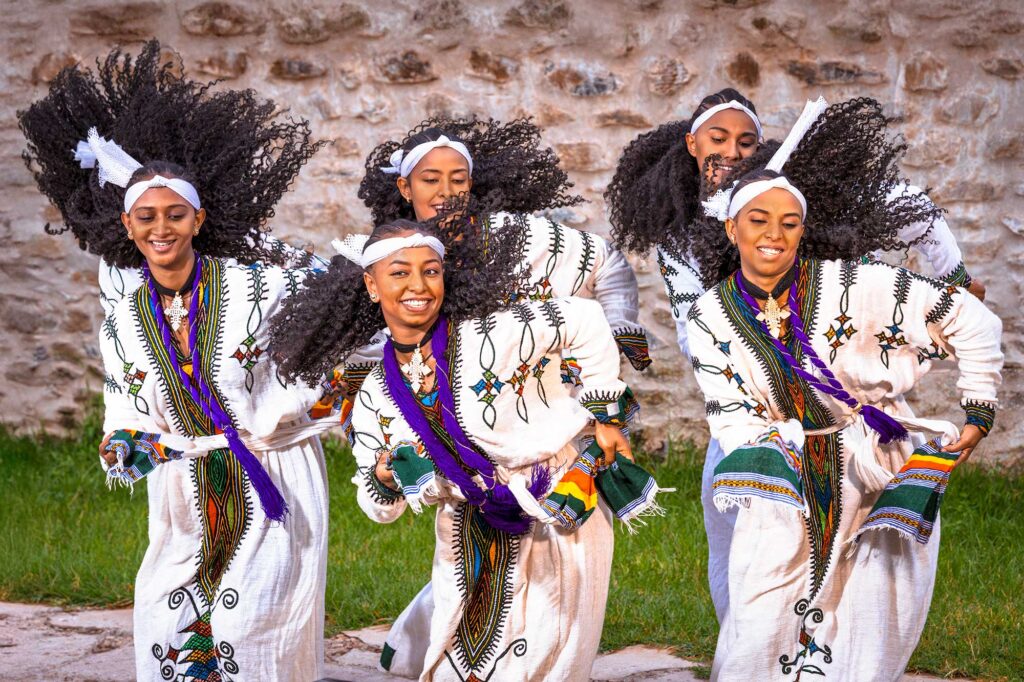 Das heutige Foto zeigt einige äthiopische Tänzerinnen, die wir bei einer Videoproduktion fotografierten. Ihr Tanz, geprägt von rhythmischen Schulter- und Kopfbewegungen, bei denen die Haare wie lebendige Strahlen durch die Luft fliegen, ist ein Ausdruck purer Lebensfreude – so wie Äthiopien selbst.